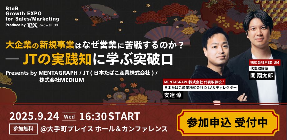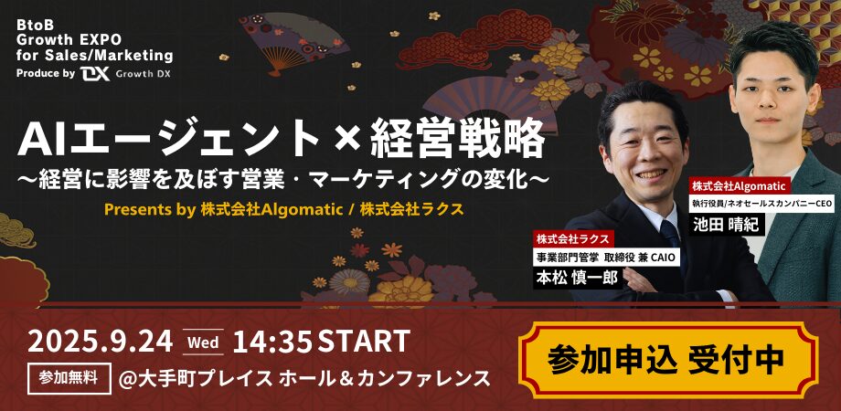 【9/24 開催】BtoB Growth EXPO for Sales/Marketing ~BtoBビジネスにおける非連続な事業成長を実現するセールスマーケ特化EXPO~